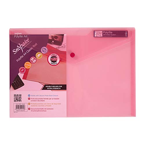 Snopake Polyfile 12839X - Cartellina con bottone a pressione e linguetta, formato A4, confezione da 5, colore: Rosso classico