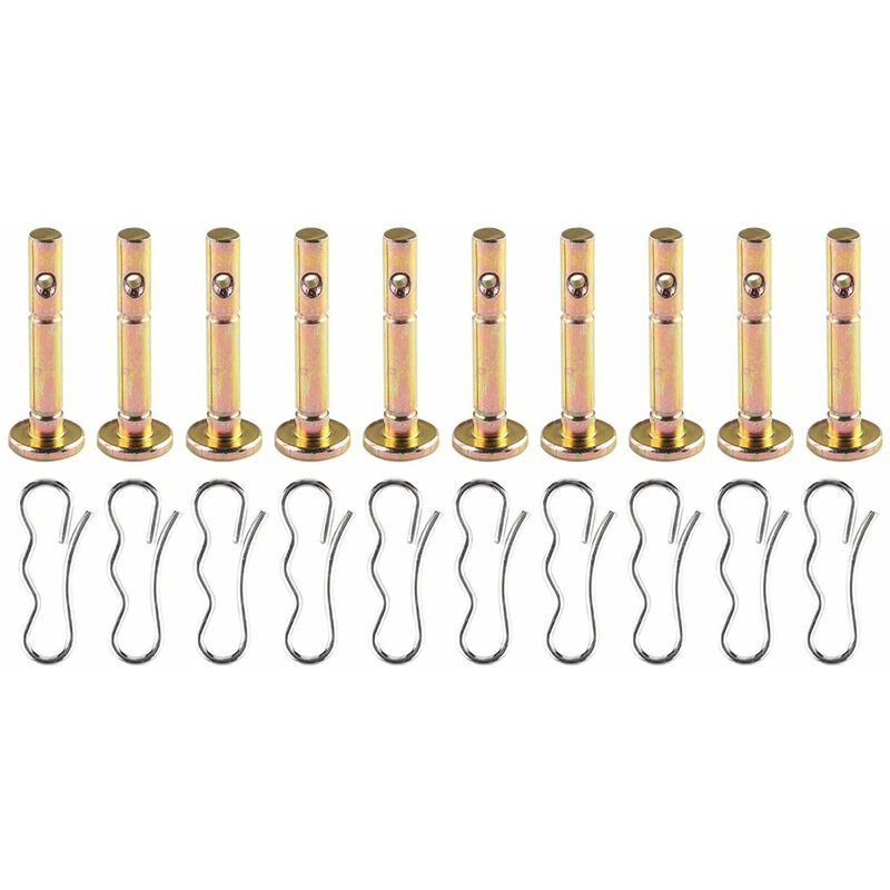 Description:Our split pins and shear pins are designed to not break when encountering branches, thick ice, or rocks, so you can use them for a long time. Suitable for any harsh environment.Features:1. Made of strong metal materials, the cotter pins and shear pins of the snowblower are rust-resistant and corrosion-resistant.2. Split pins and shear pins are compatible with MTDs, Craftsman, Cub Cadet, Troy-Bilt, and are suitable for most level 2 and some level 3 snow blowers.3. Our products are very easy to use. Just push the shear pin and lock it in place with a split pin. After checking the lock, you can use it with confidence.Specifications:Material: MetalSize: Shear Pin: about 0.5 x 1.6 inches / 1.3 x 4.1 cmSplit Pin: about 0.5 x 1.3 inches / 1.3 x 3.3 cmPacking List:10 * Split Pins, 10 * Shear PinsNotes:Due to the lighting effects and shoot angles, there is a color difference in the product, please understand.Due to manual measurement, there is tolerance in the product size.