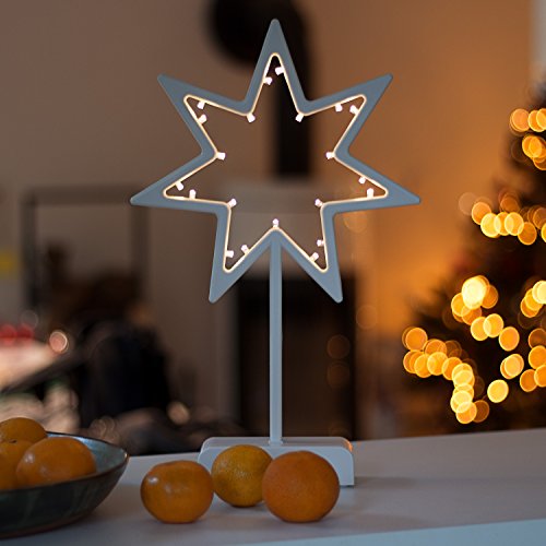 SnowEra Decorazione Natalizia |Lampada Decorativa a Forma di Stella Natalizia in Plastica Senza Fili con 20 LED e Batterie incluse - Colore Luce: Bianco Caldo