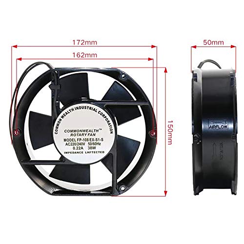 SNOWINSPRING Ventilatore Assiale -108EX-B 220V 38W Ventola di Raffreddamento Un Doppio Cuscinetto Ovale 172X150X51Mm