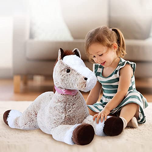 【REGALO PERFETTO】Il cavallo di peluche gigante è un'ottima idea regalo per i compleanni dei bambini, San Valentino, Natale, Ringraziamento. Può anche essere usato per decorare la tua festa, casa, divano. Adatto a bambini dai 3 anni in su.