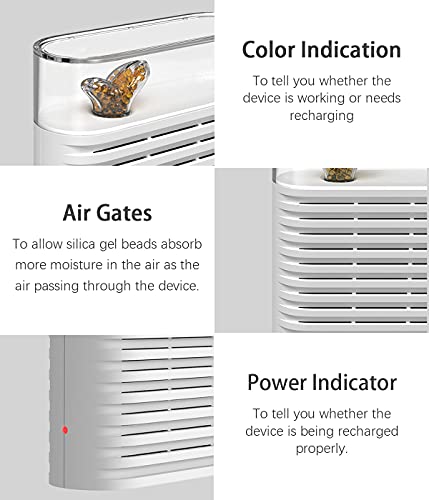 Riutilizzabile e rinnovabile: risparmio di denaro! Ottieni un mini assorbitore di umidità Snowpea per risparmiare i costi per centinaia in futuro. Le perle di silice che assorbono l'umidità passano dall'arancione al verde scuro per dirti quando è pieno. Basta ricaricare con il cavo in dotazione e guardare le perle di silice che indicano cambiare colore.