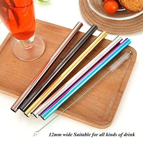 SNOWZAN 6 cannucce in acciaio inox riutilizzabili, in metallo, lavabili in lavastoviglie, 12 mm, extra large, con 2 spazzole per la pulizia