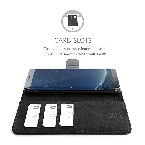 Snugg Cover Galaxy S8, Samsung Galaxy S8 Flip Custodia Case [Slot Per Schede] Pelle Portafoglio Progettazione Esecutiva [Garantita a Vita] - Nero intenso, Legacy Range