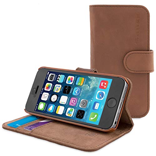Snugg Custodia in pelle per iPhone 4/4S, con scomparti per carte di credito, colore: Marrone