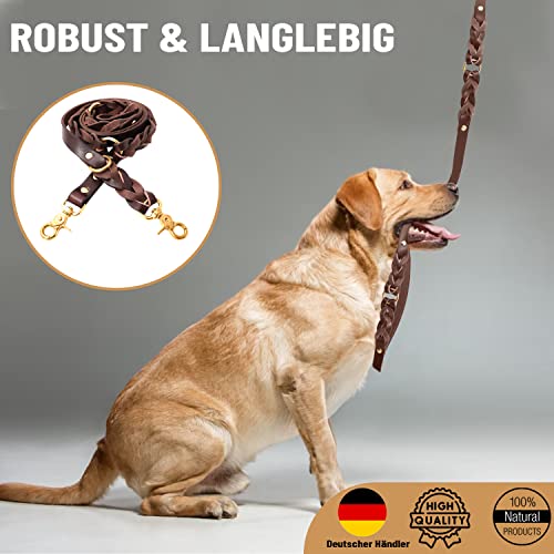SnugglePAW - Guinzaglio per cani in vera pelle, colore: marrone scuro e oro, con moschettoni a forbice per cani di taglia grande, regolabile in diverse dimensioni, 180/130/110 cm x 2 cm