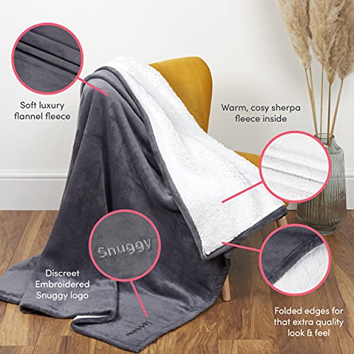 Snuggy - Coperta soffice in pile di flanella e Sherpa, reversibile, super accogliente, morbida e calda, per camera da letto, cucina, giardino, campeggio | S e L (grigio)