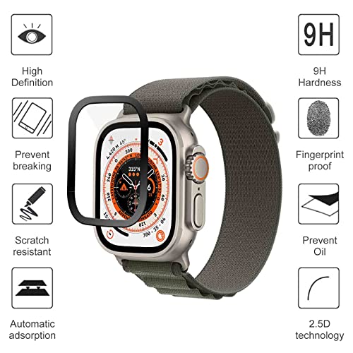 【ELEVATA DUREZZA E ANTIGRAFFIO】Apple Watch Ultra 49mm Vetro Temperato è realizzato con un'alta qualità di Ultrasottile di spessore premium wish ha una durezza estremamente elevata del vetro temperato e offre la massima protezione da graffi, graffi e urti.