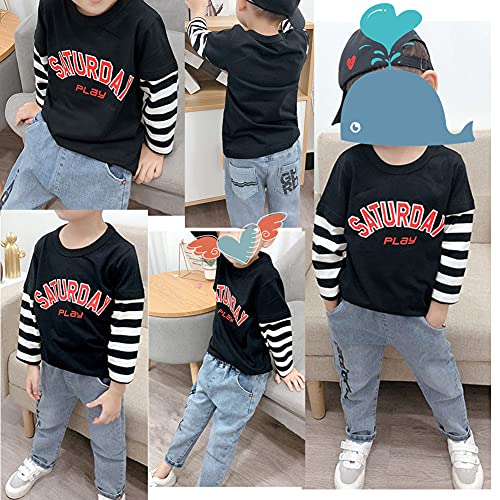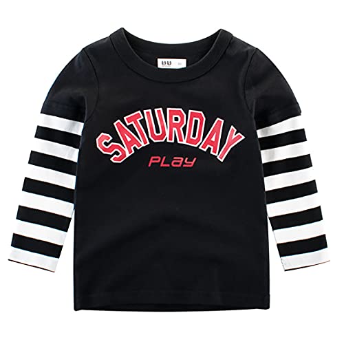 Snyemio Bambino Maglietta Maniche Lunghe Casual Cotone t Shirt Girocollo Tops 1-6 Anni, Nero, 128-134(Etichetta 130)