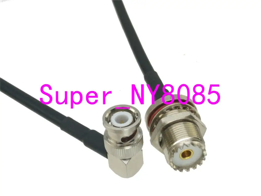 RG58 UHF SO239 Female Jack Bulkhead to BNC Male Plug Right angle RF Jumper pigtail Cable 6FT-20M