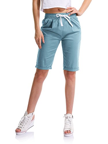 Sobrisah donne Casual coulisse in vita elastico lunghezza del ginocchio Shorts Curling Bermuda us 12 turchese