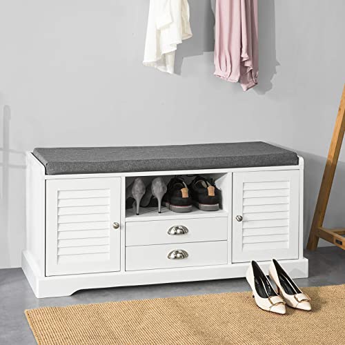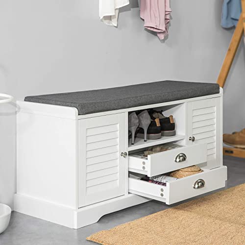 SoBuy Panca scarpiera Cassapanca da Interno Mobile Bagno con 2 ante e 2 cassetti Bianco L98*P33*A49cm FSR71-W