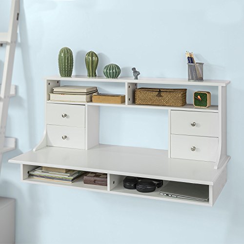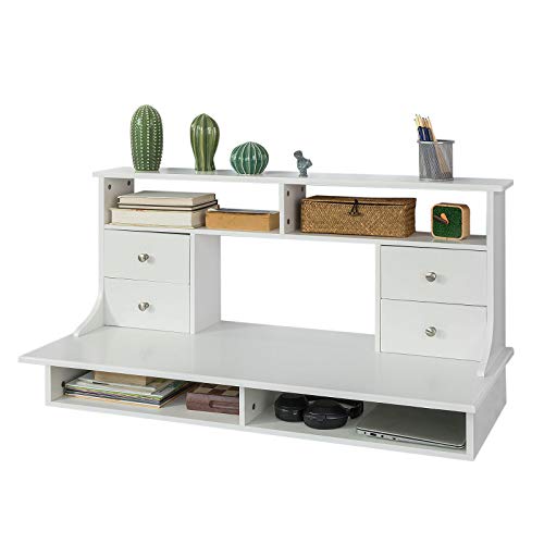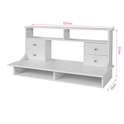 SoBuy Scrivania Bianca con cassetti Tavolo da Parete Tavolo Computer Lunghezza 107 cm FWT49-W