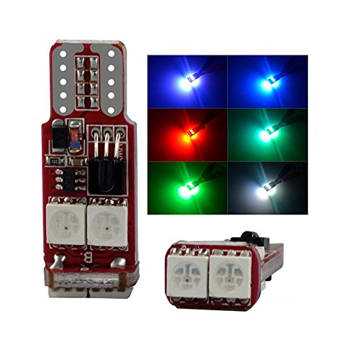 Telecomando RGBW T10 auto luce, FUN 16 colori per cambiare, accenderlo o spegnere, regolare la luminosità, rendere la luce dissolvenza, strobo, dissolvenza e funzioni regolari. Queste lampadine a LED producono molta luce per migliorare l'illuminazione, aggiungendo un tocco moderno all'illuminazione del tuo veicolo.