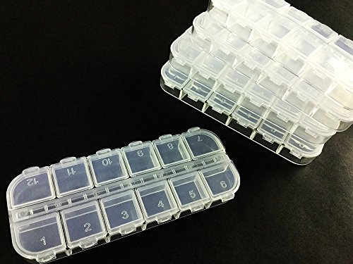 Soccik - Scatola di perline per gioielli, in plastica, con 12 scomparti, 5 pezzi