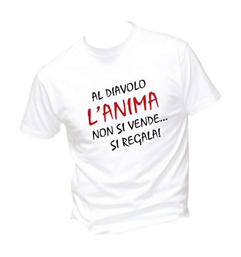 Social Crazy T-Shirt Uomo Cotone Basic Scollo Ampio a Taglio Vivo - al Diavolo Divertente Humor Made in Italy (L, Bianca)