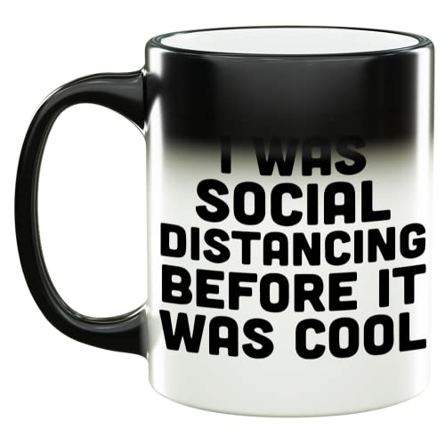 I Was Social Distancing Before it Was Cool tazza. Versa la tua bevanda calda per rivelare il design nascosto! Un regalo divertente per marito, moglie, papà, mamma, fratello o sorella!