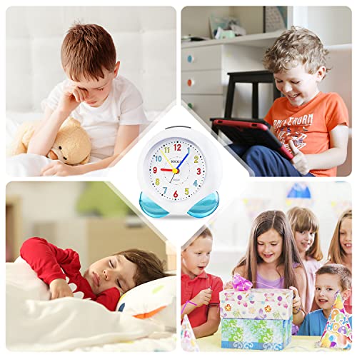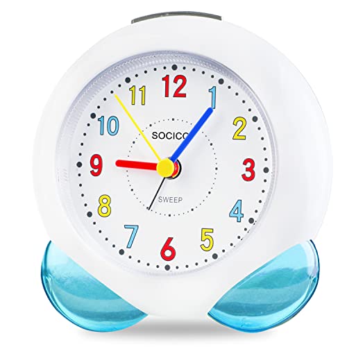 SOCICO Sveglia Bambini Ragazzi Ragazze Analogica Bambini Sveglia Silenziosa Senza Ticchettio Luce Silenziosa Sveglia per La Scuola Principianti Camera Da Letto Orologio Da Tavolo (blu103)