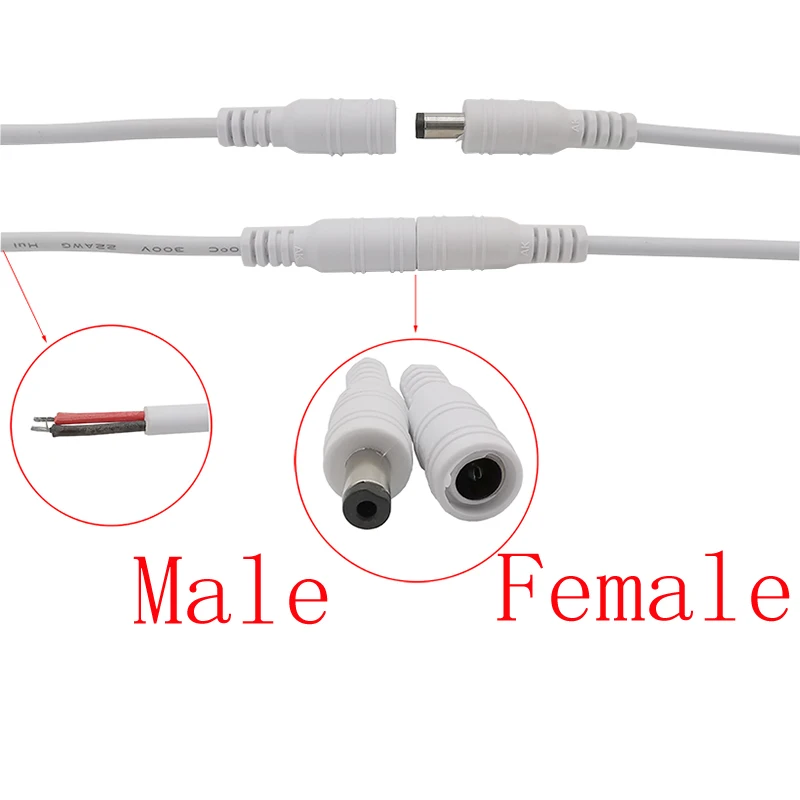 5.5*2.1mm DC Plug Socket Connectors 5.5 x 2.1mm DC Power Male Female Jack Pigtail Cable Wire Connector for 3528 5050 LED Light