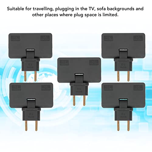 5Pcs EU Socket Converter Cordless 180 Gradi Estensione da 1 a 3 EU Plug Adapter Adattatore per Presa Europea 110‑250V (Nero)