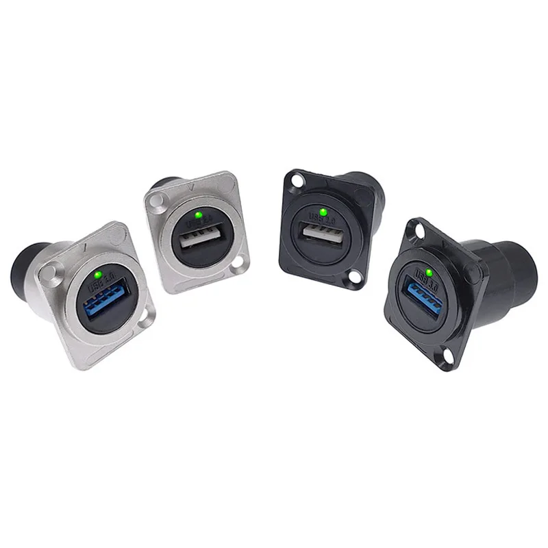 USB socket with LED light D type Metal female to female USB 3.0 USB 2.0 connector panel mounting