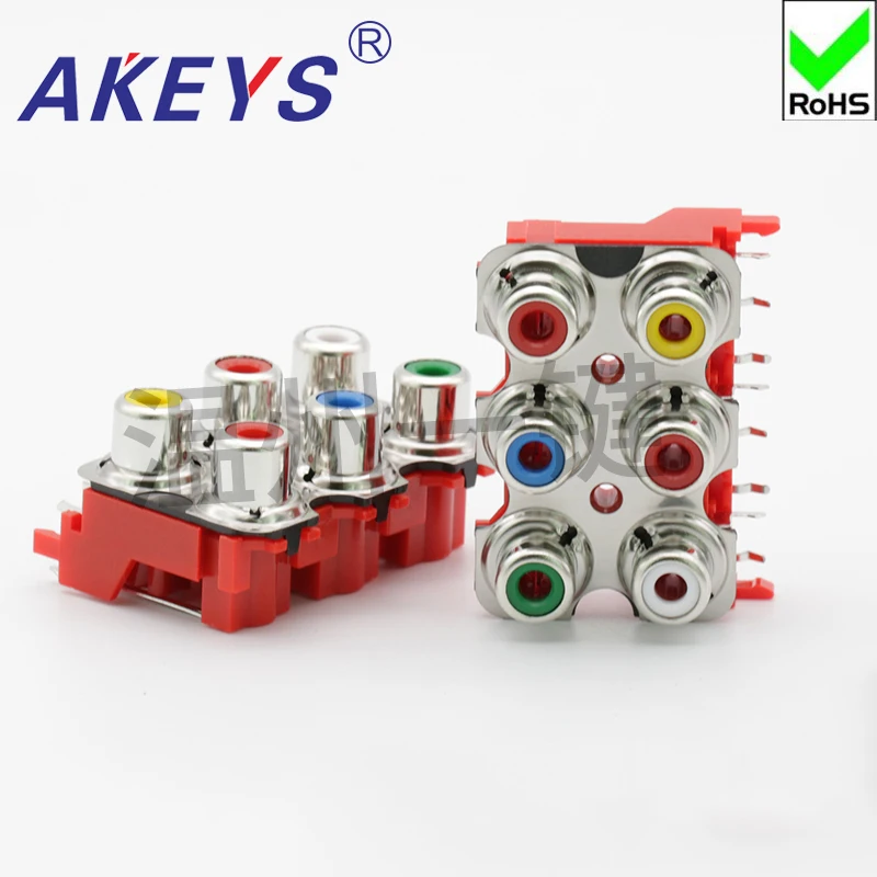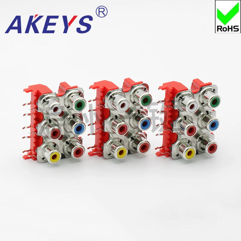 10 pcs AV with core socket RCA seat six-hole PCB welded Audio Video socket Lotus seat AV6-8.4-13PB