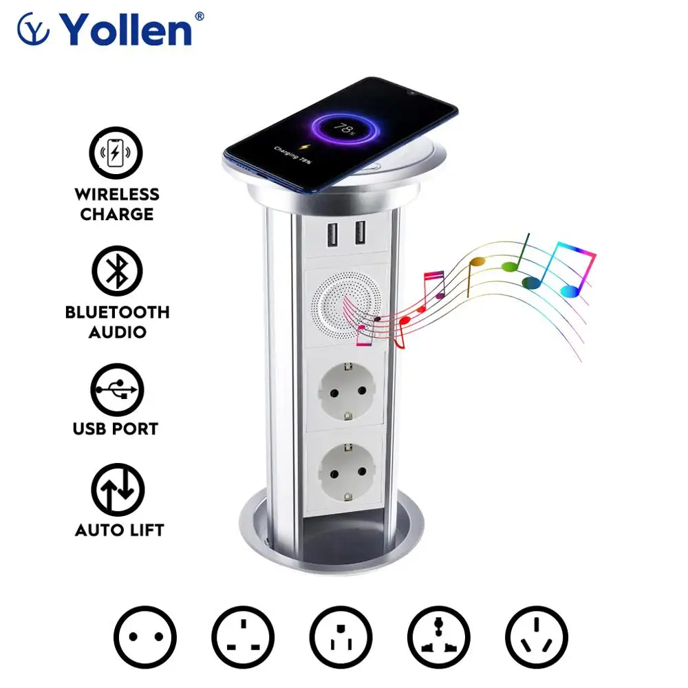 EUR Socket Table Auto lift Electric Socket USB Port Smart APP Remote Control Bluetooth Audio Desktop Retractable Wireless Charge