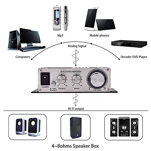 Socobeta Amplificatore di Potenza Mini Amplificatore di Potenza Audio a 2 canali Amplificatore Stereo HiFi Digitale per Auto MP3(Nero)
