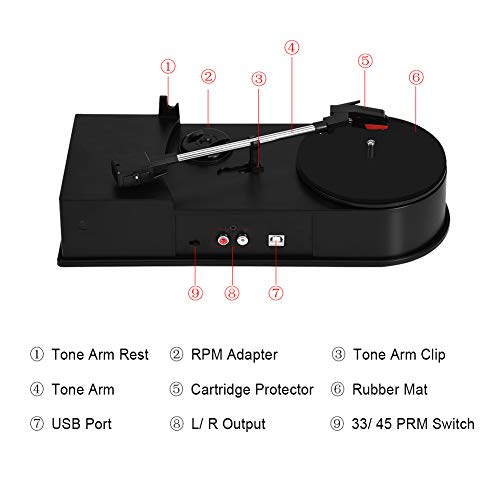FORMATO DI CONVERSIONE:Questo giradischi può convertire vecchi dischi LP in formato MP3 e memorizzarli facilmente su un computer, telefono cellulare, tablet o altri dispositivi multimediali, consentendoti di goderti la musica dei dischi LP sempre e ovunque.
