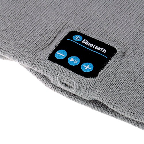 SODIAL(R) Bluetooth Musica Beanie Cappello morbido Cappa calda con Stereo cuffie cuffia altoparlante senza fili Mic Mani - libero per Uomini Donne Regalo - grigio chiaro