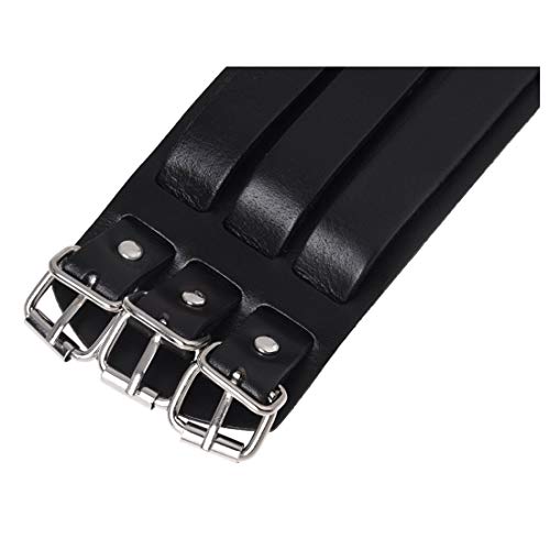 SODIAL(R) BRACCIALE BRACCIALETTO IN PELLE NERA UNISEX 3 FIBBIE