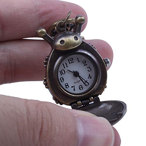 SODIAL(R) Tono Bronzo metallo anello chiave pendente figura del coccinella orologio tasca