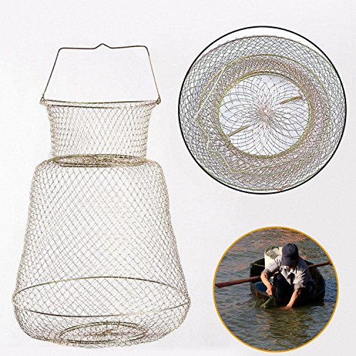 SODIAL Canestro portatile pieghevole del pesce della gabbia del granchio della gru a cingoli del granchio della rete da pesca del cavo d'acciaio pieghevole