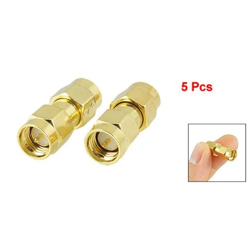 SODIAL(R) 5 Pcs Gold Tone SMA Male to SMA Male Plug RF Coaxial Adapter Connector