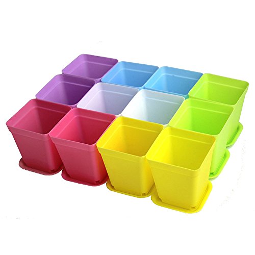 SODIAL Colorful Vasi Per Piante In Plastica Con Piattini, Set Di 12