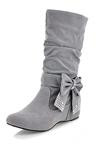 SODIAL(R) Donna Moda Medio Alto Piatto Cravatta a Farfalla ciondolare Stivali - Nero 35