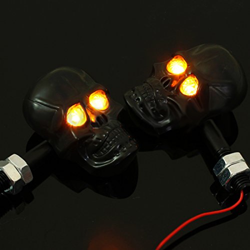 SODIAL(R)(R) 2x frecce indicatori di direzione ambra teschio skull 3d moto harley custom nero