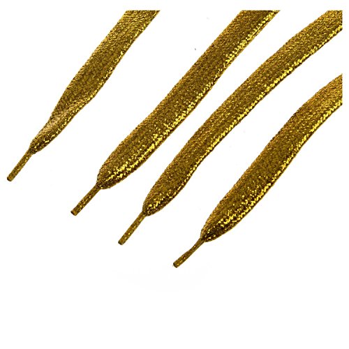 SODIAL (R) Lacci delle scarpe 47 "glitter PIATTO COLORATO SPORT DANZA FANCY DRESS - oro