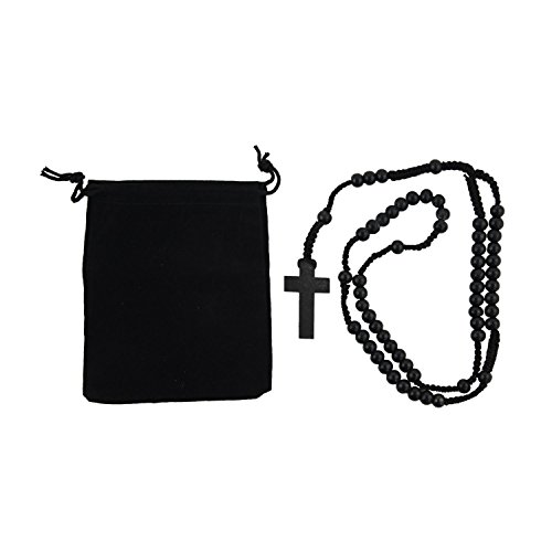 SODIAL Legno Pendente Ciondolo Collana Nero Croce Perline Retro 24 Pollici Rosario Catena Catenina Uomo,Donna