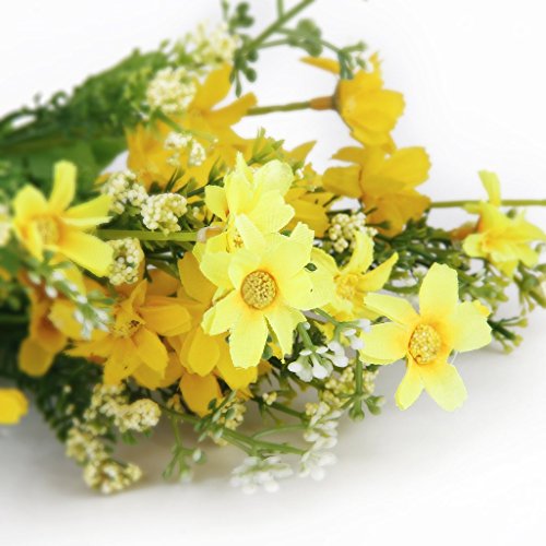 SODIAL(R) 1 mazzo di cineraria Bouquet finto di fiori artificiali per la decorazione domestica / Ufficio - giallo