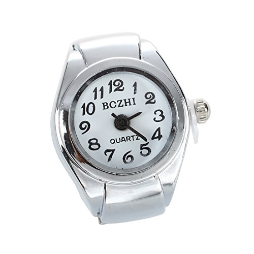 Sodial, orologio anello unisex, in lega, quadrante bianco rotondo, numeri arabi, colore: argento