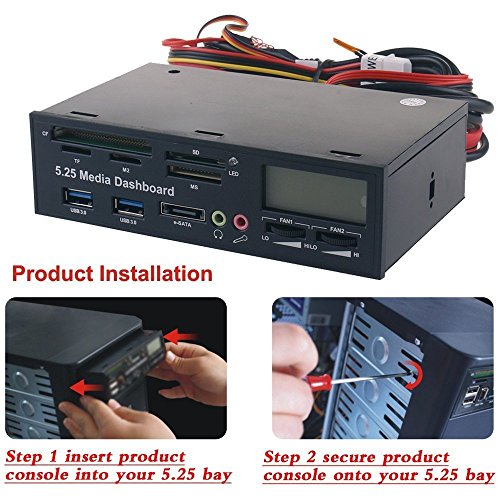 SODIAL Pannello multimediale multifunzione Pannello frontale da 5,25 pollici per computer con SATA/eSATA, USB 2.0/USB 3.0, Porte audio per microfono/cuffie e lettore di schede integrato
