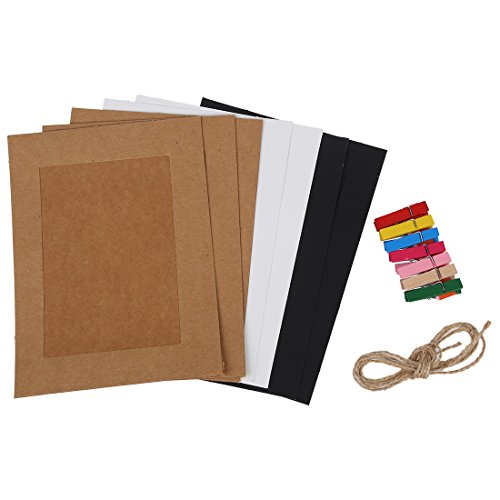 SODIAL (R) 7pz riga Photo Cornice di carta con corda di canapa e 7 mollette di legno