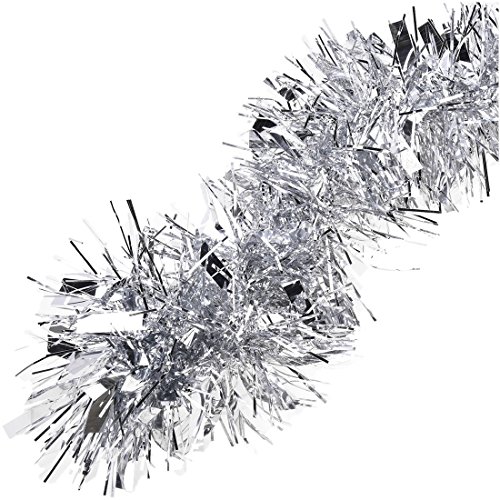 SODIAL(R) 2m (6,5 piedi) Deluxe Spesso Chunky Ampia Shiny Silver Albero di Natale Tinsel Garland con goffratura Decoration