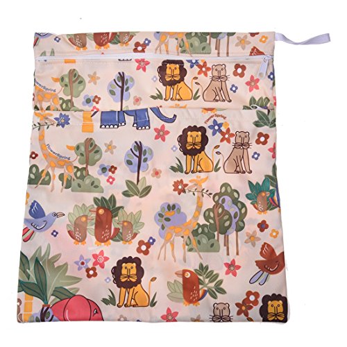 SODIAL (R) Sacchetto pannolini bambino lavabile disposizione stoccaggio (modello animale Elefante Leone Beige )