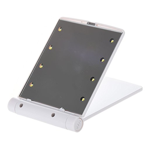 SODIAL (R) Specchio per il trucco compatto pieghevole tascabile con luci LED cosmetici - Bianco