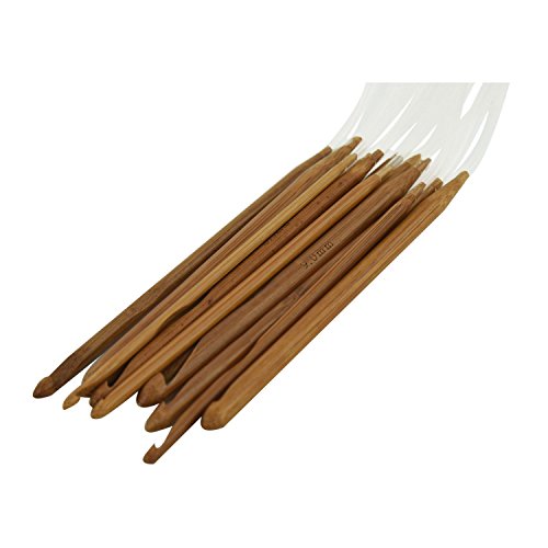 SODIAL(R)12 Taglie afghani tunisino uncinetti carbonizzati di bambu' 3.0-10.0mm - con cavo di plastica per il progetto massimo flessibilita'
