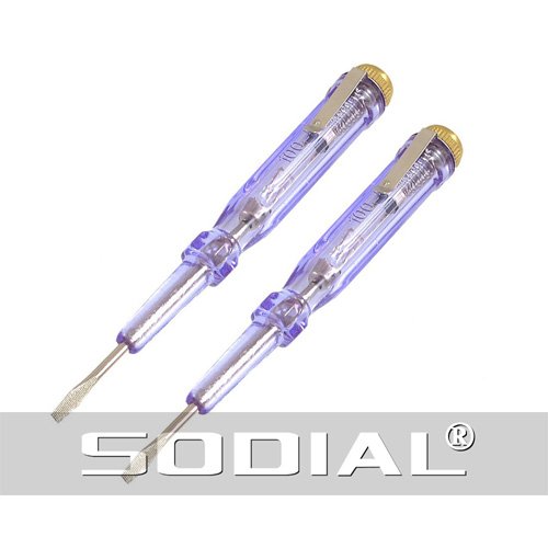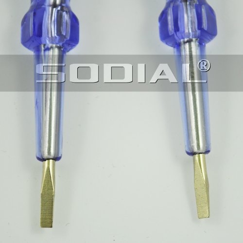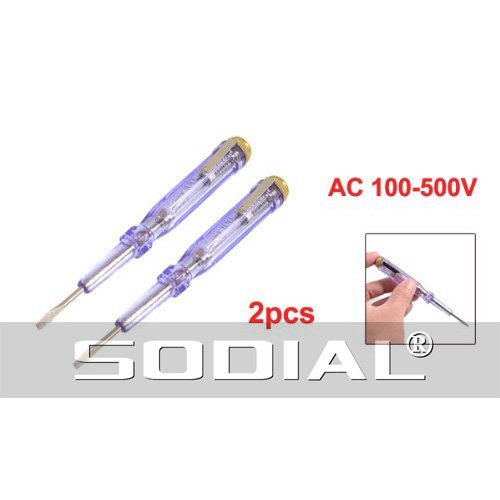 SODIAL(R) 2 x Tester di tensione, cacciavite con impugnatura scanalata in plastica, blu, trasparente, 100-500 V AC,