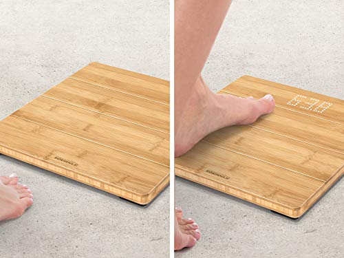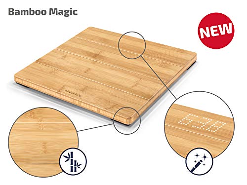 Materiale di qualità - La bilancia pesapersone professionale ha una superficie in vero bambù naturale, pratica da pulire e piacevole per al contatto con i piedi.