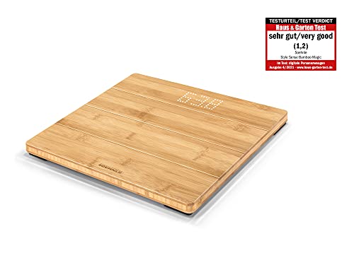 Soehnle Style Sense Bamboo Magic Bilancia pesapersone digitale, Bilancia digitale con display LED a scomparsa, Bilancia persone in bambù naturale